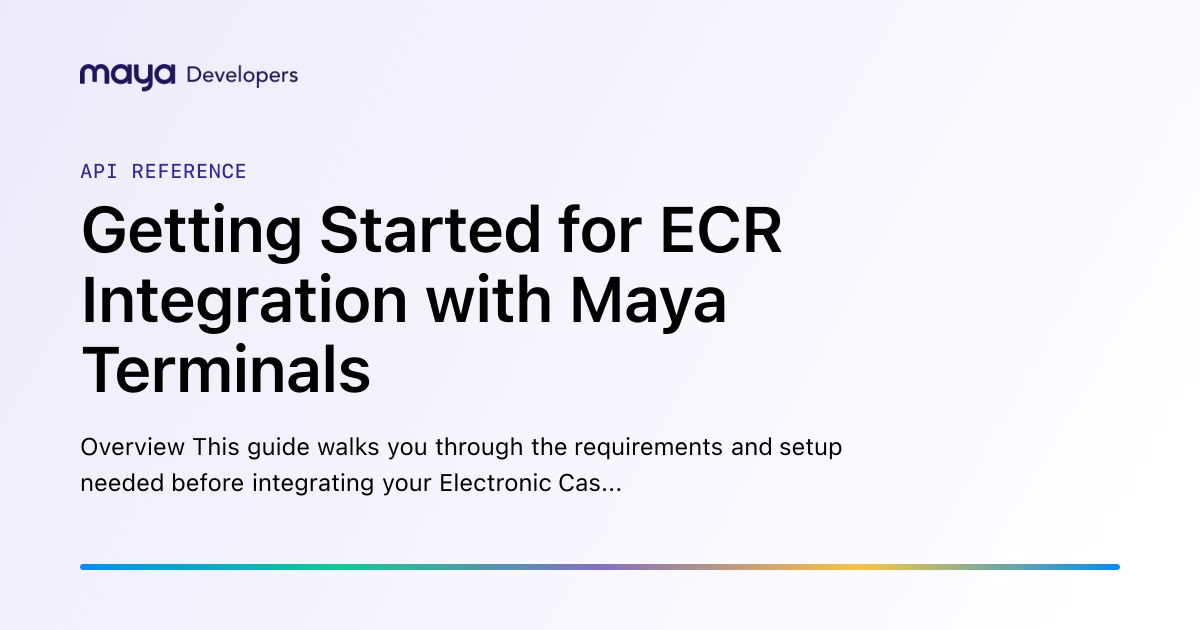 - Review the ECR Integration Guide to understand the technical requirements and steps for integrating your POS system with the Maya Terminals.