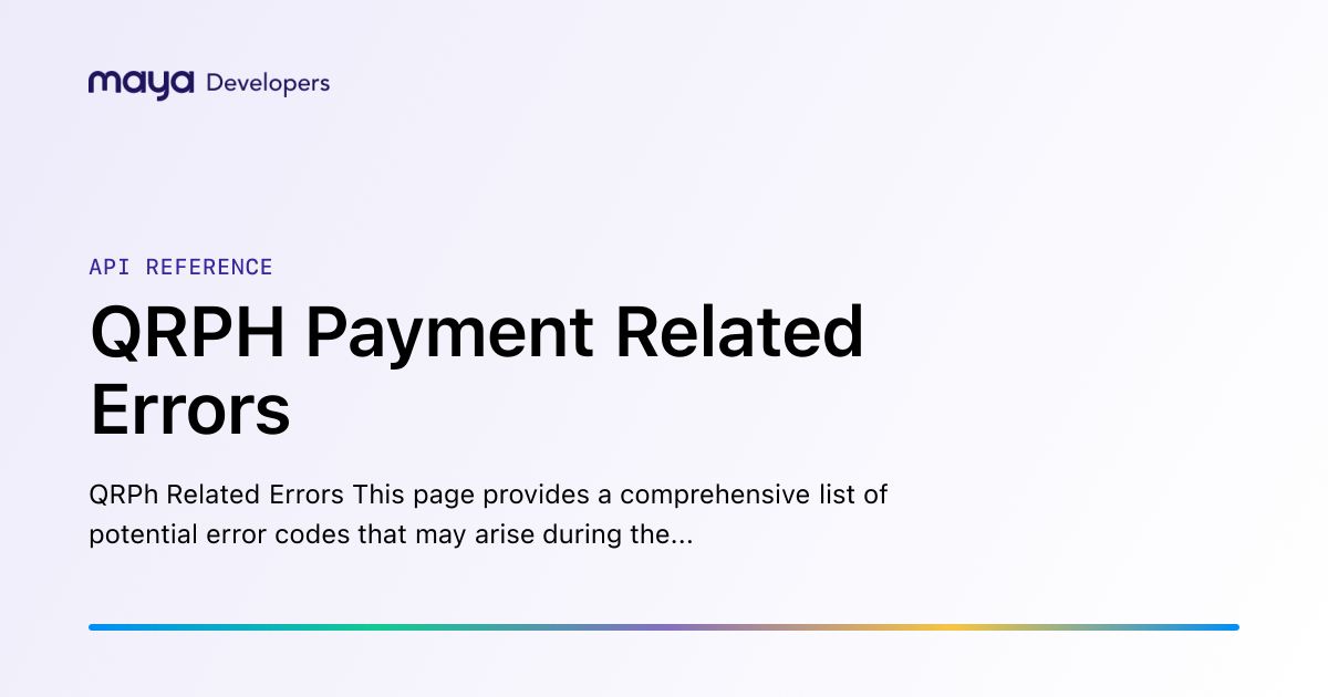 We have an issue on generating QR code. we are receiving below error message. Our code and API keys is working when using Maya checkout but for QR generation it is not working.
